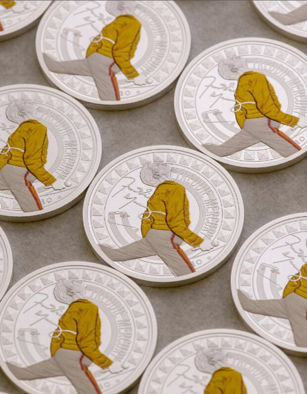 Во одредени верзии, монетите се збогатени со боја, оживувајќи ја култната жолта јакна на Меркјури и неговиот препознатлив сценски дух. Кралската ковница истакнува дека секој детаљ е осмислен да го пренесе креативниот бунт и магнетизмот што го дефинираа пејачот.